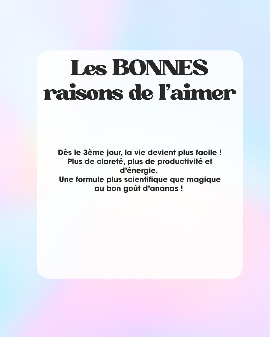 Pas de baisse de régime, pas de brouillard cérébral: juste une concentration nette et soutenue pour des performances optimales.
