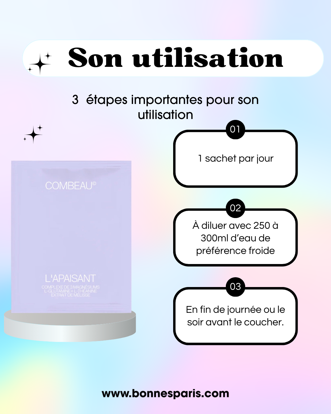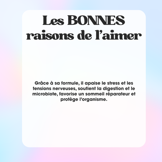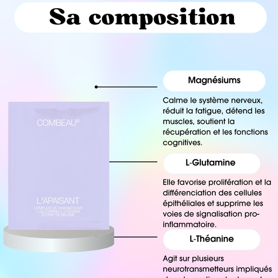 Retrouvez votre équilibre intérieur grâce à ce complexe inédit de 3 magnésiums d'exception justement dosés, hautement biodisponibles et à haute tolérance digestive ; associés à de la L-Théanine, L-Glutamine ainsi qu'à un extrait de Mélisse français biologique pour réduire votre stress physique et cellulaire. Arôme myrtille.