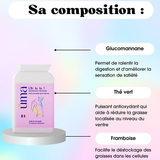 Oh La La Minceur est un programme minceur très puissant qui brûle les graisses, accroît les dépenses caloriques, régule l'appétit, favorise l'élimination des toxines et renforce le pouvoir détoxifiant des organes.