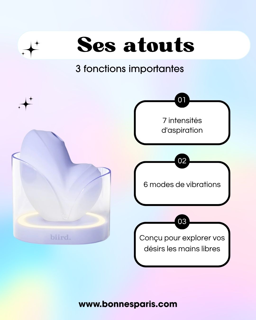 Utilisez les vibrations séparément pour stimuler vos zones érogènes ou celles de votre partenaire, ou activez-les lorsque vous utilisez la fonction d'aspiration pour une toute nouvelle expérience.